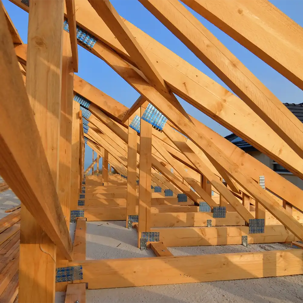Nous travaillons principalement la charpente en bois, matériau noble et durable, qui offre résistance et charme naturel à vos toitures.
